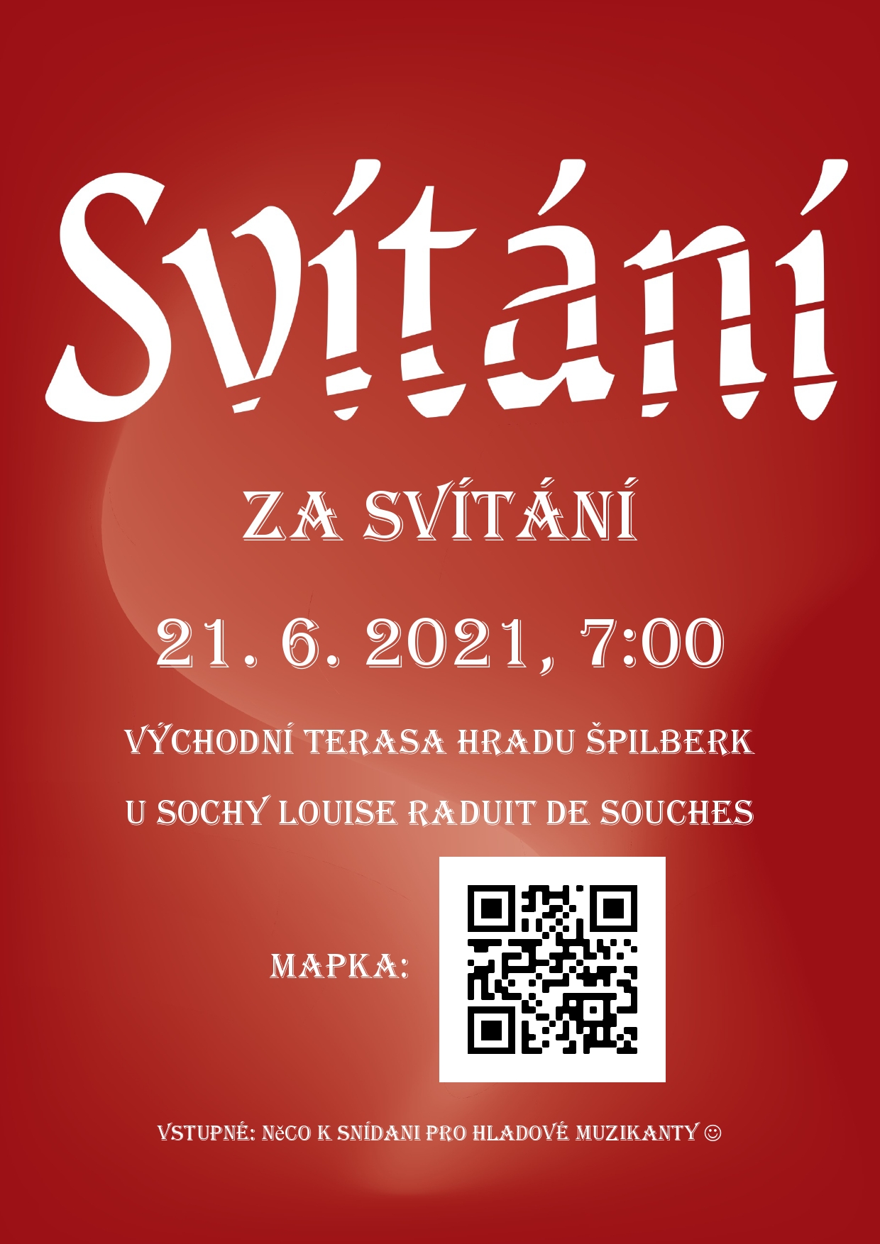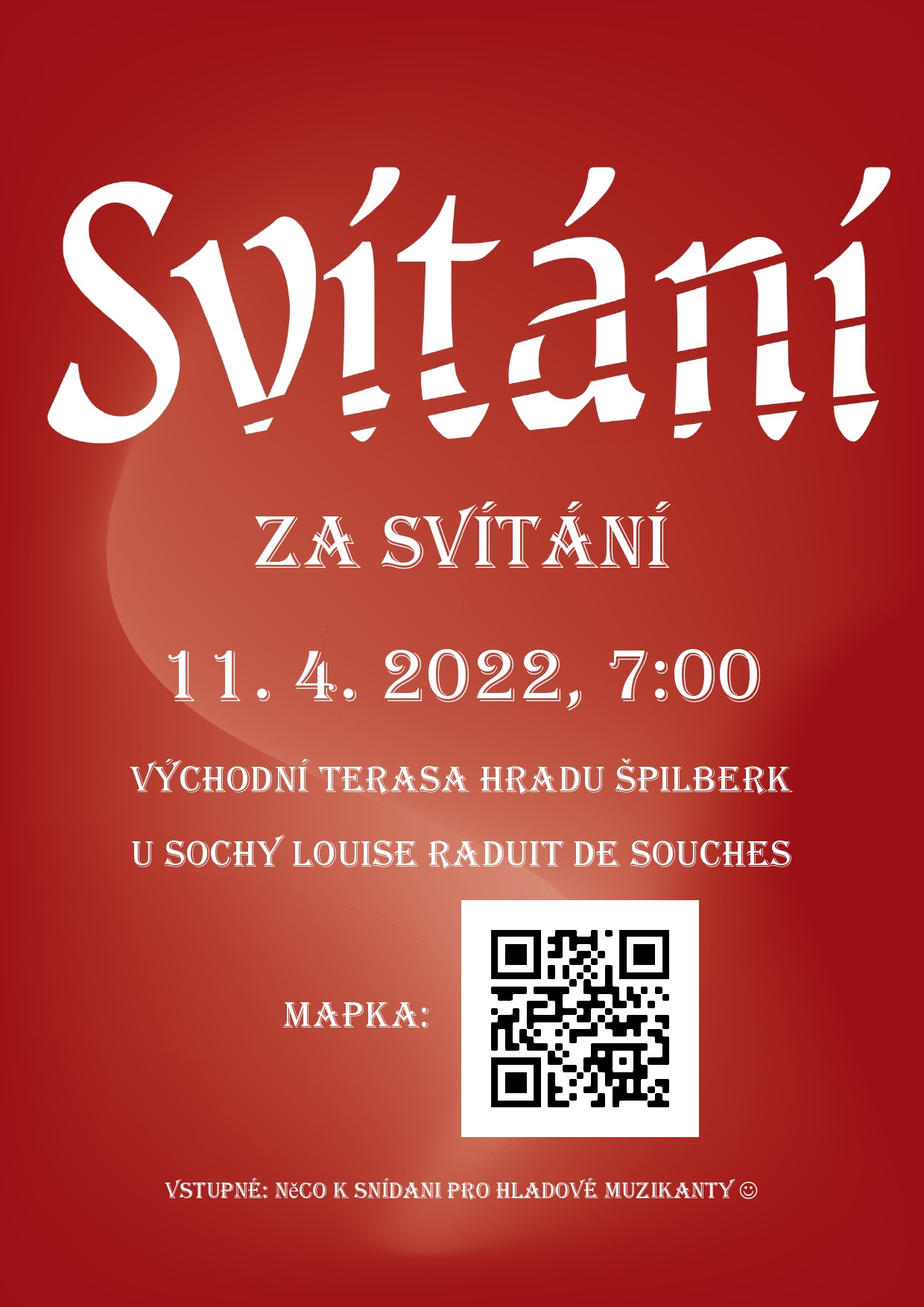 Přichystali jsme pro vás též 2 speciální akce: 4. 12. bychom se měli objevit v Dobrém ránu s Českou televizí. A 12. 12. v 19:00 bude na našem facebookovém profilu online koncert s názvem Půlhodinka se Svítáním. Nově na něj nabízíme možnost osobní účasti v Brně (pouze 6 míst!). Po koncertě společně posedíme, zazpíváme si (i písně na přání) a pojíme něco cukroví.